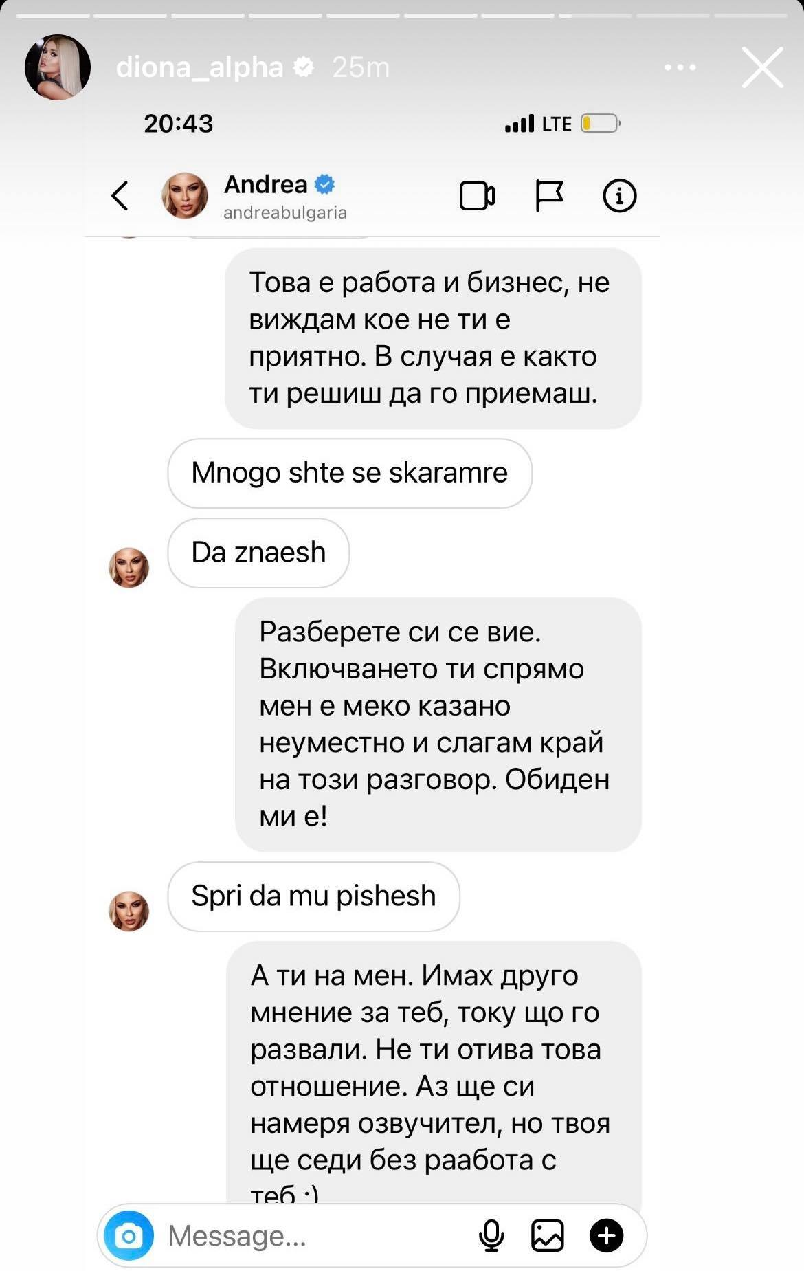 Андреа заплашва Диона: Ще ти счупя главата, обещавам! СКРИЙНШОТ на тайни чатове