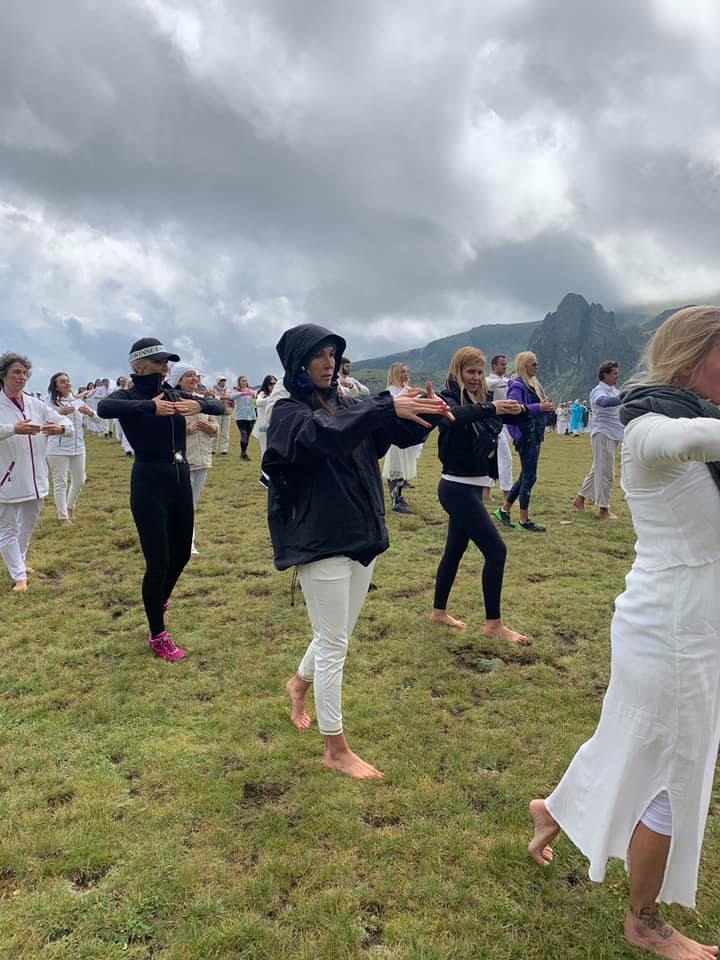 Напук на студеното време, Анелия и компания посрещнали изгрева високо в планината край езерото Бъбрека и дори се включили боси в космическия танц на тревата.