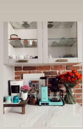 В централната част на хола има масивна витрина със семейни снимки и дребни предмети с прекрасни спомени, а кухнята е обогатена с малък, но необходим домакински уред, който означава живот – кафе машина. Частта от дома, която показват предимно семейства с малки деца, разбира се е къта с играчки, който актрисата също засне, предават от zenskimagazin.mk.