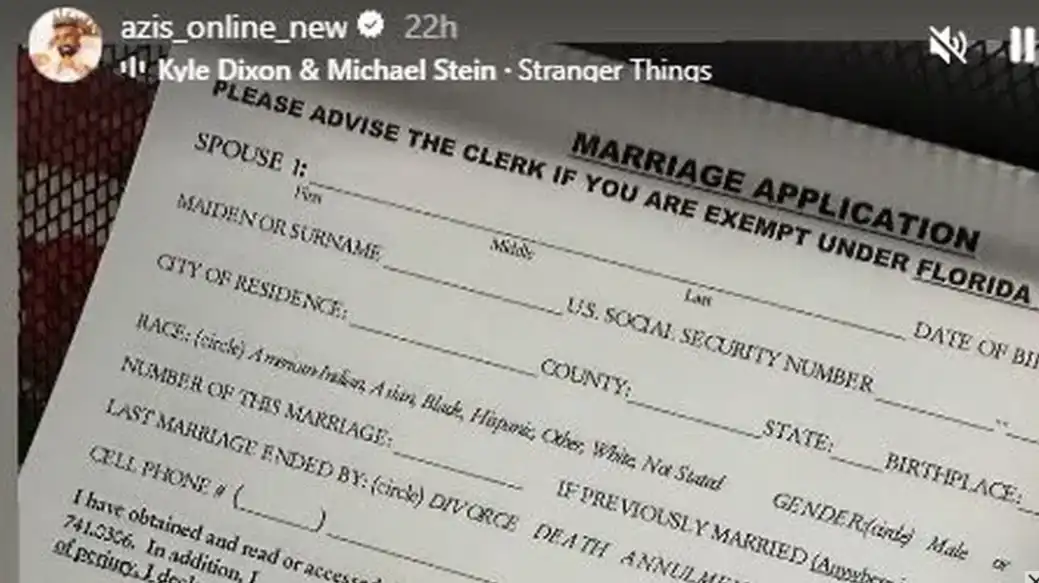 Обещанието за пълна тайна обаче не издържа дълго. В серия от сторита в Инстаграм, които по-късно бяха изтрити, Азис показа как отива до гражданското, за да вземе необходимите документи за сключване на брак.