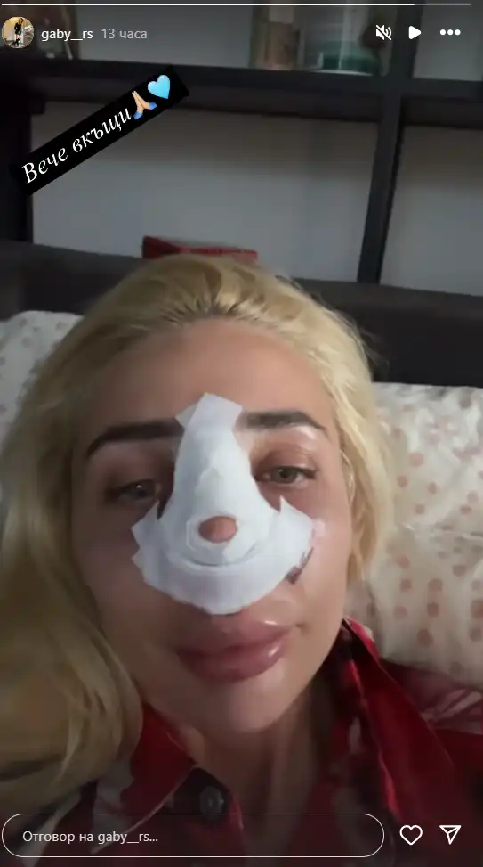 Габи от „Ергенът“ легна под ножа, за да си коригира носа и часове след интервенцията вече си е у дома и показва крайния резултат.