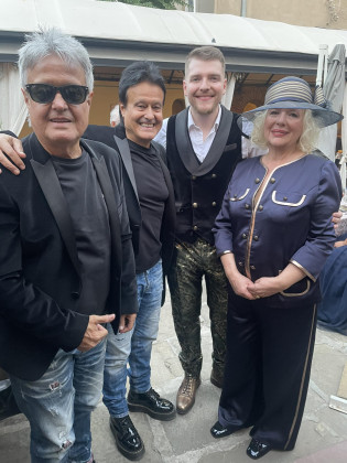 В музикалната програма се включи и режисьорът Милко Стоянов, който пристигна от Германия заедно с братовчедката на свекървата Криси Белчева – Мадлена. Светският пиар и продуцент Евгени Минчев откри поздравителната част със стиховете на поета „Белчевият род го има, други да му мислят“ и изпълни хита, пак по негови рими, „По първи петли“.