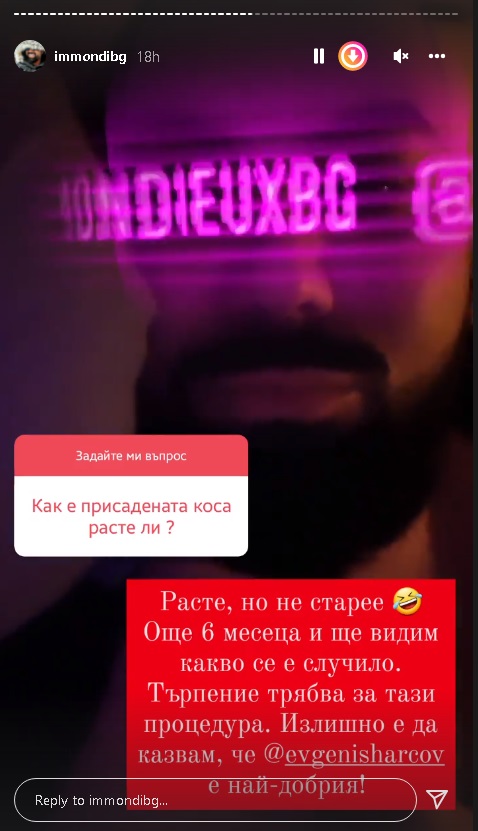 Той е решил да покаже новата си грива час след половин година, а дотогава зрителите ще го виждат с шапка. Тези признания той направи в Инстаграм, след като подтикна последователите си да му задават въпроси. Така те научиха какво го е направил добър журналист, как се подготвя за интервюта, с кого не би искал да се среща, какви храни не обича и т.н.