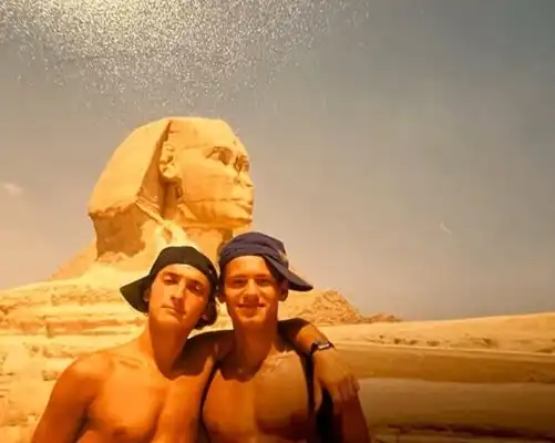 На един от кадрите Орлин е в легендарния компютърен клуб „Матрицата“, добре познат на цяло поколение. На други снимки се вижда на пътешествие до Египет, позирайки пред Сфинкса, както и на море – все сцени от младостта, които връщат назад във времето.
