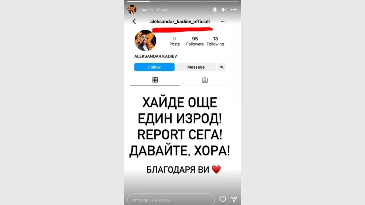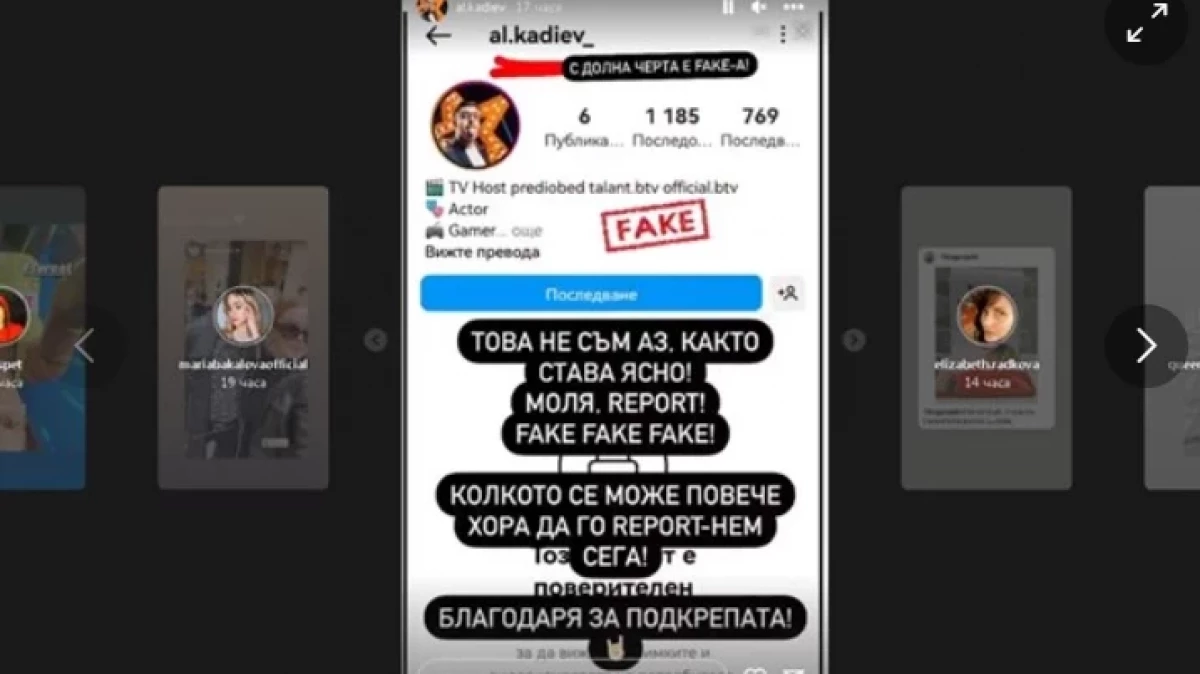 Кадиев, който е поредната ни популярна личност, чието име се ползва без позволение за реклама на съмнителни продукти чрез фалшиви профили, е твърдо решен да не оставя така нещата, а да пресече измамата, пишат от show.blitz.bg.