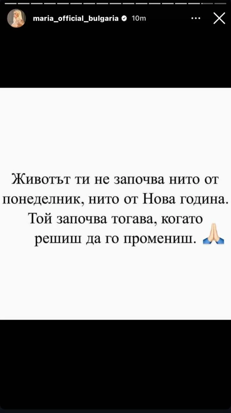 „Животът ти не започва нито от понеделник, нито от Нова година. Той започва тогава, когато решиш да го промениш“, гласи и следващото й стори.