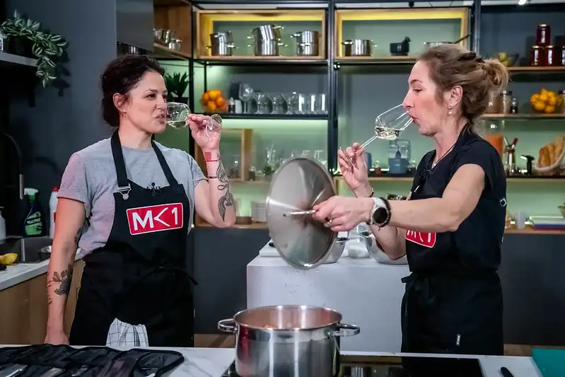 Освен всичко, те трябва да измислят име на ресторанта, в който посрещат останалите участници от своята група, както и да аранжират подобаващо масата. Към последната задача Адриана и Нона подходиха много сърцато – Нона подреди малки, ръчно изработени чашки за аперитива, а ресторантът получи името „Малка гроздова“.