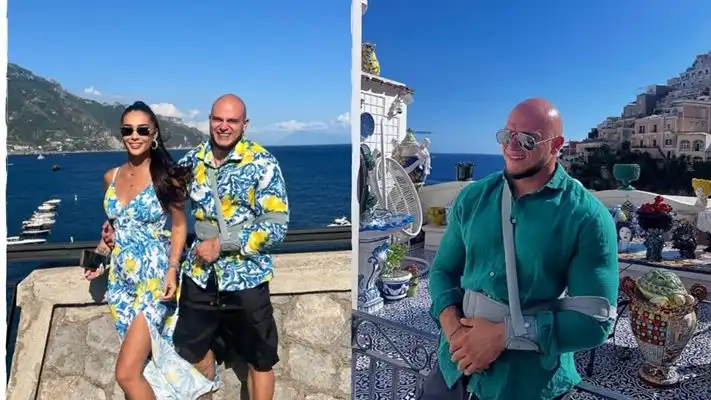Въпреки че само преди три месеца преживя тежък инцидент и бе блъснат от тротинетка, италианецът вече е във форма и отново сияе. На кадрите от почивката се вижда, че все още носи превръзка на ръката, но това не му пречи да се наслаждава на времето с красивата Габриела.