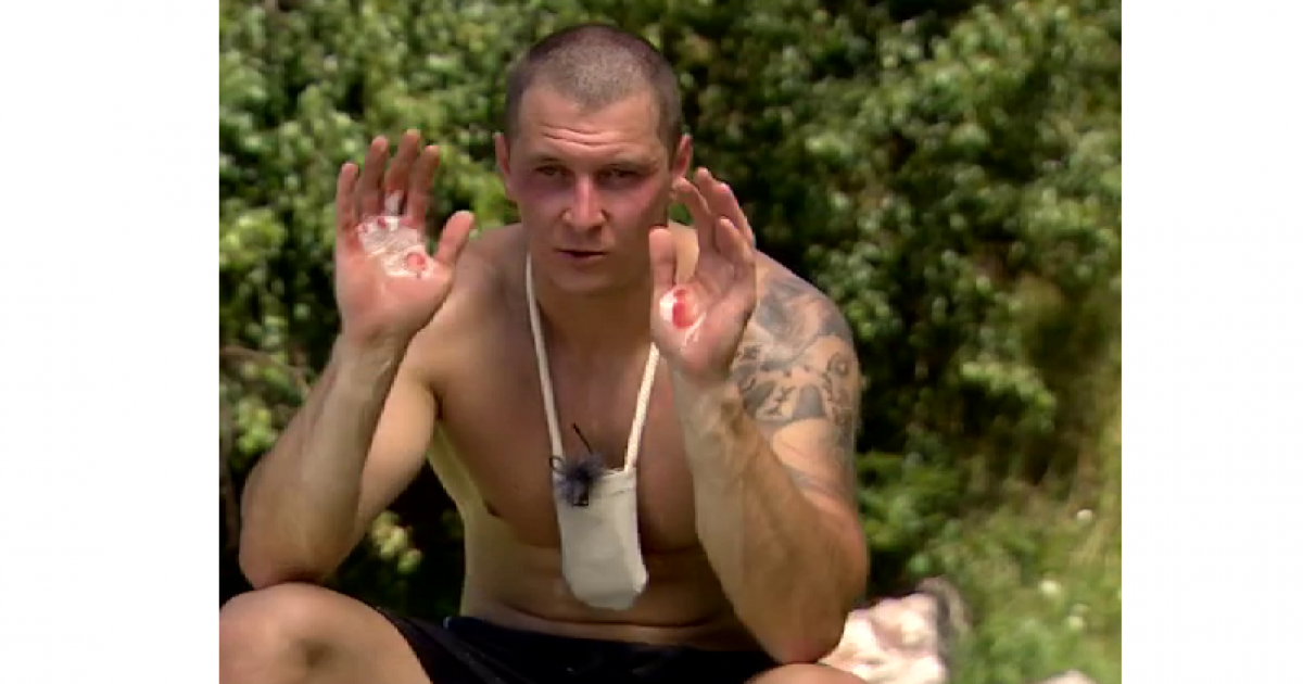 Бившият герой от ъндърграунда Мариян превърна дланите си в кървава пихтия, докато размахваше брадва в първата мъжка битка и категорично отказа да сложи ръкавици, за да си спести охлузванията. Раните му обаче се оказаха много дълбоки и се наложи на терена да пристигне медик, за да ги обеззарази и превърже.