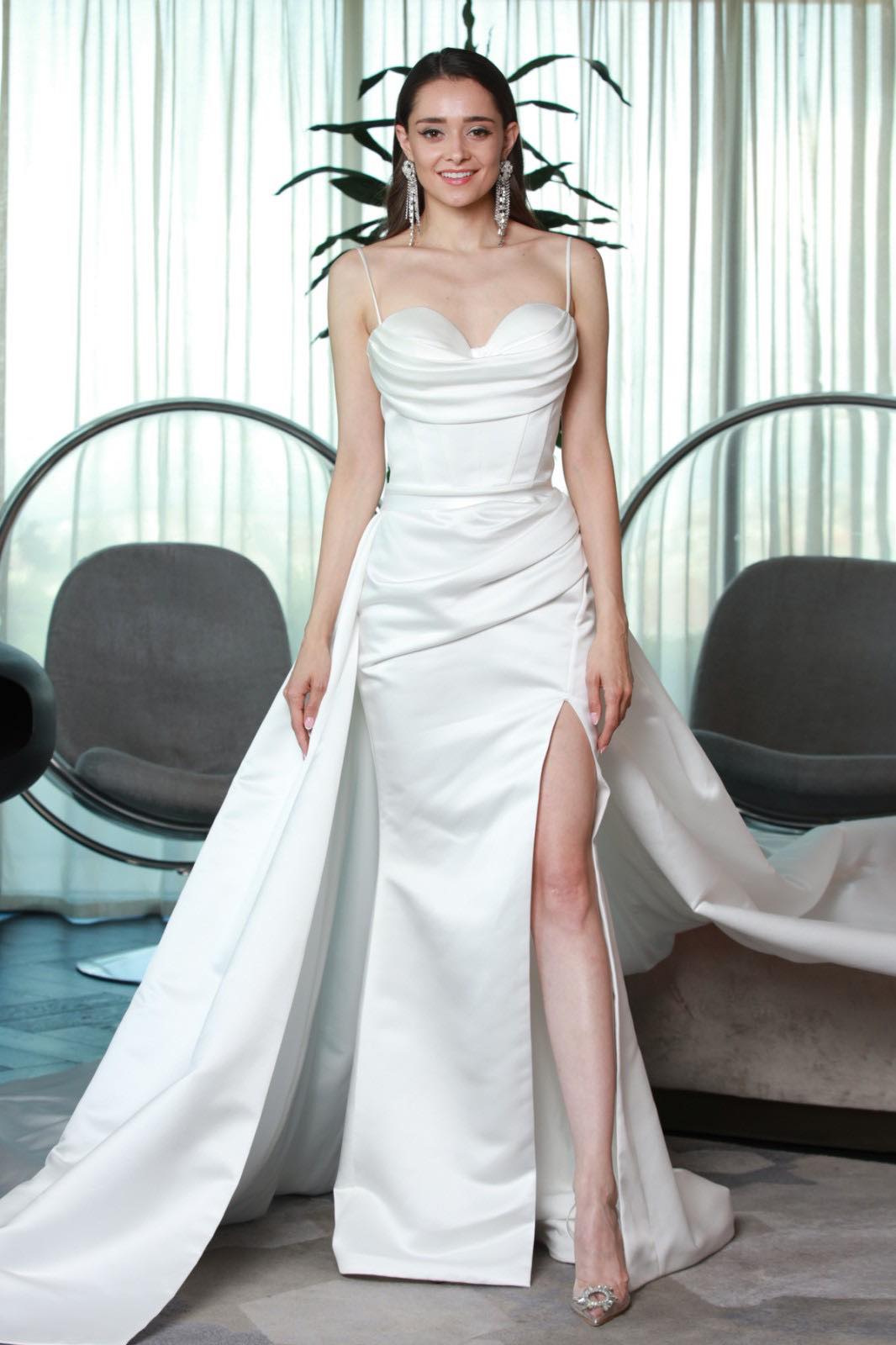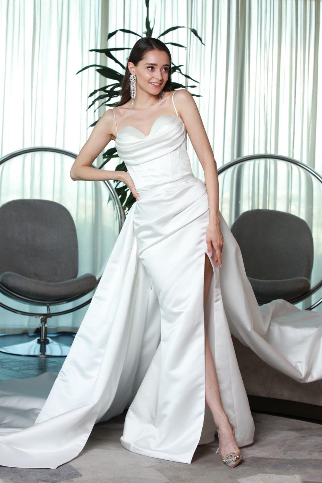 Победителката от последния сезон на „Ергенът“ Валерия изненада всички със снимки, на които позира с булчинска рокля. Спряла се е на сатенена рокля от две части и всички се чудят дали не се е венчала тайно за пианиста Евгени Генчев.